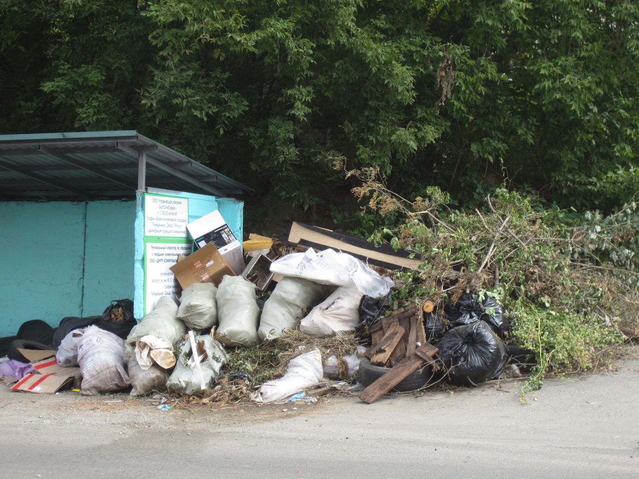 ЦКС: «Вместе с тем, контейнерная площадка находится в неудовлетворительном состоянии. Сами баки, а также территория, прилегающая к бакам, постоянно завалены отходами, не относящимся к твердым коммунальным: ветки, спилы деревьев. Вывоз такого мусора не включен в тариф на услугу по обращению с ТКО».