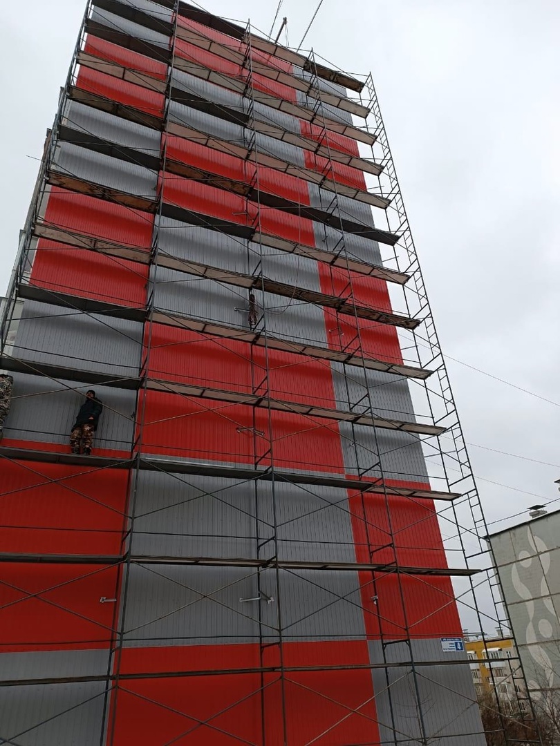 Закончилось утепление второго торца дома №4 по ул. Чкалова – начали снимать леса.