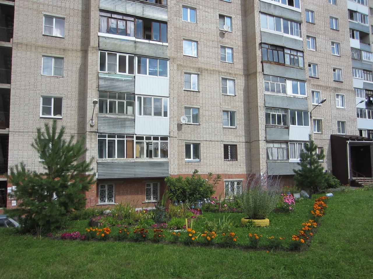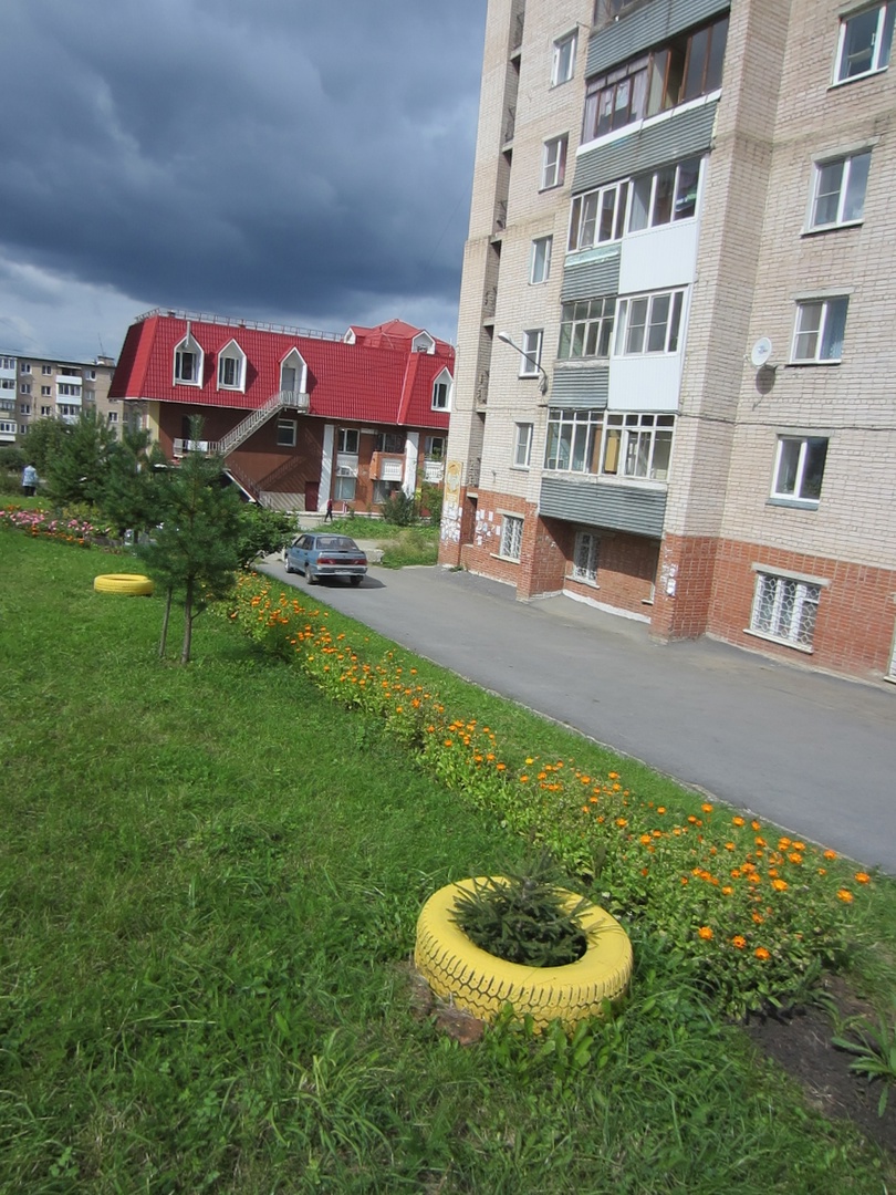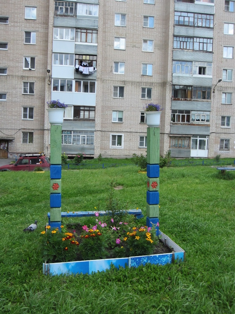 Двор у дома №14а по ул. 40 лет Победы своеобразный – придомовой проезд и косогор. Впрочем, такие горки в нашем районе у многих домов. Но не все их украшают по мере возможности.
