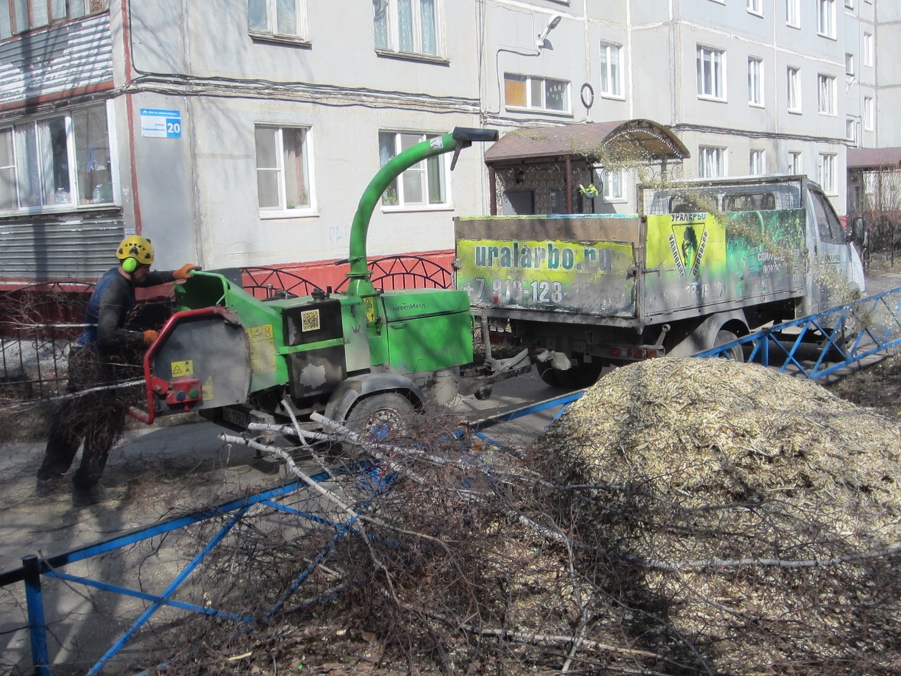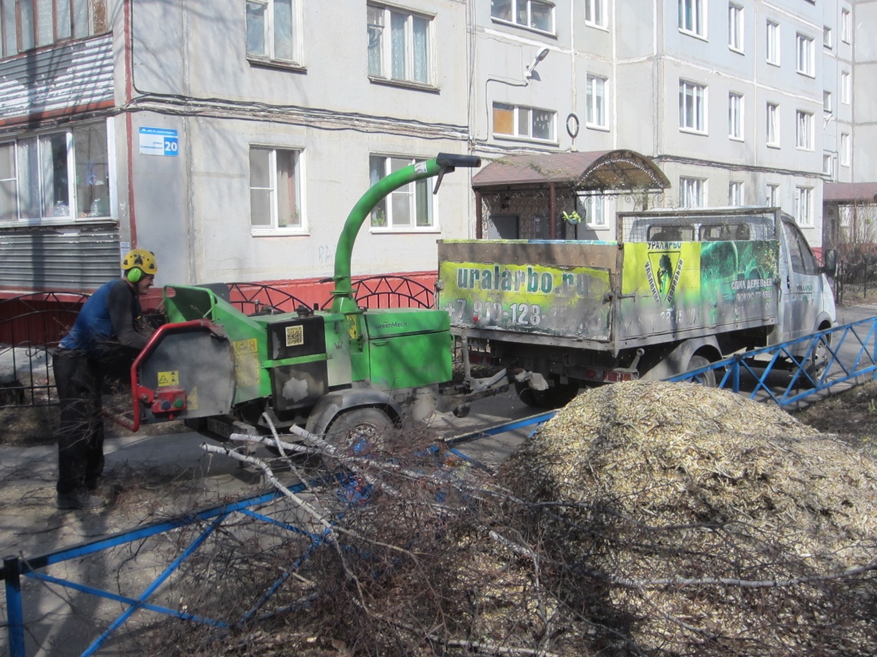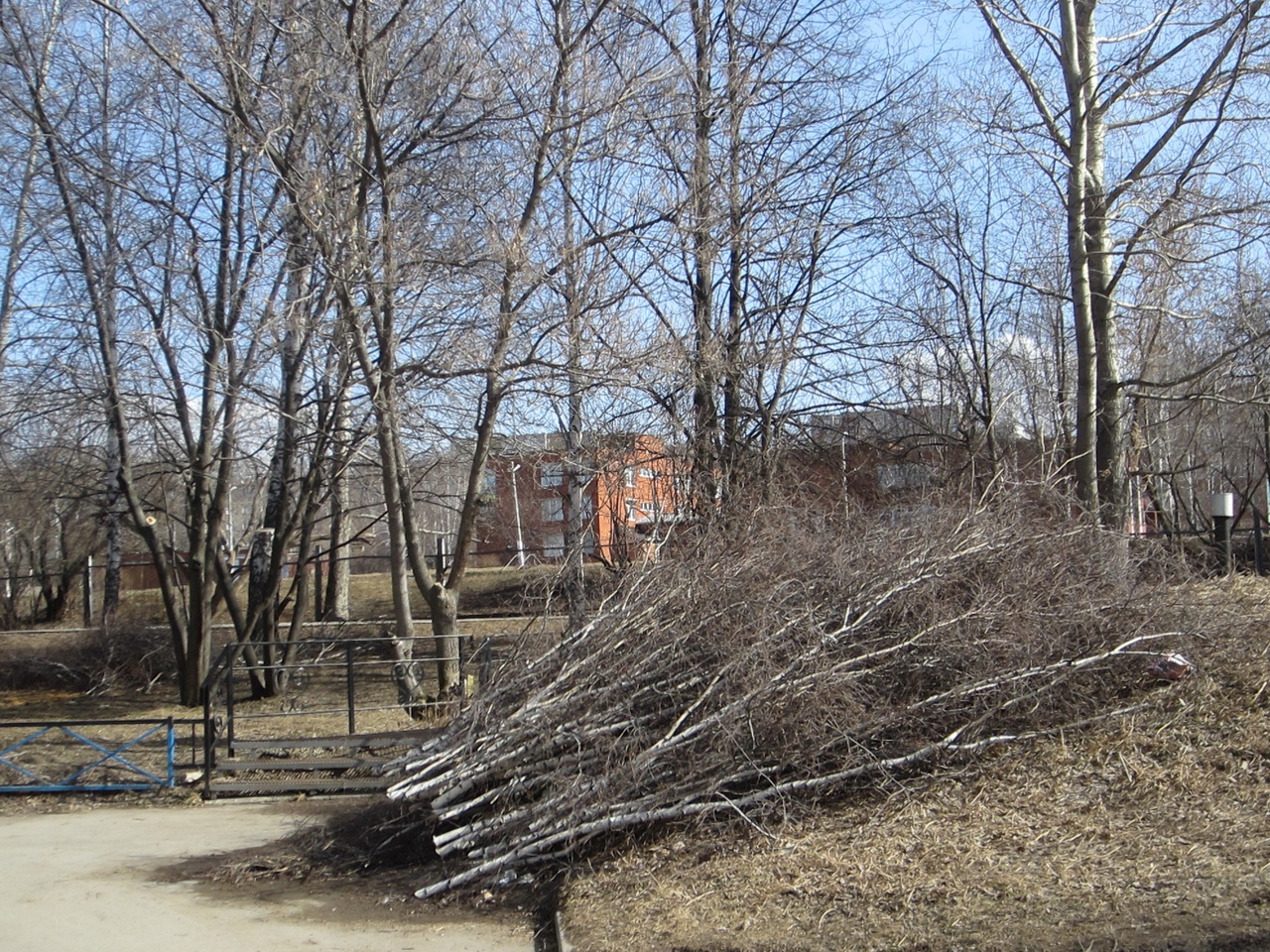 Приехали специалисты. Аккуратно провели обрезку – с использованием спецтехники. Сложили ветви в тех местах, где они никому не мешали.