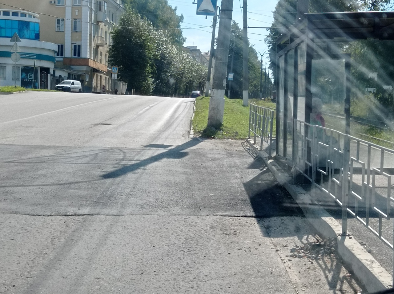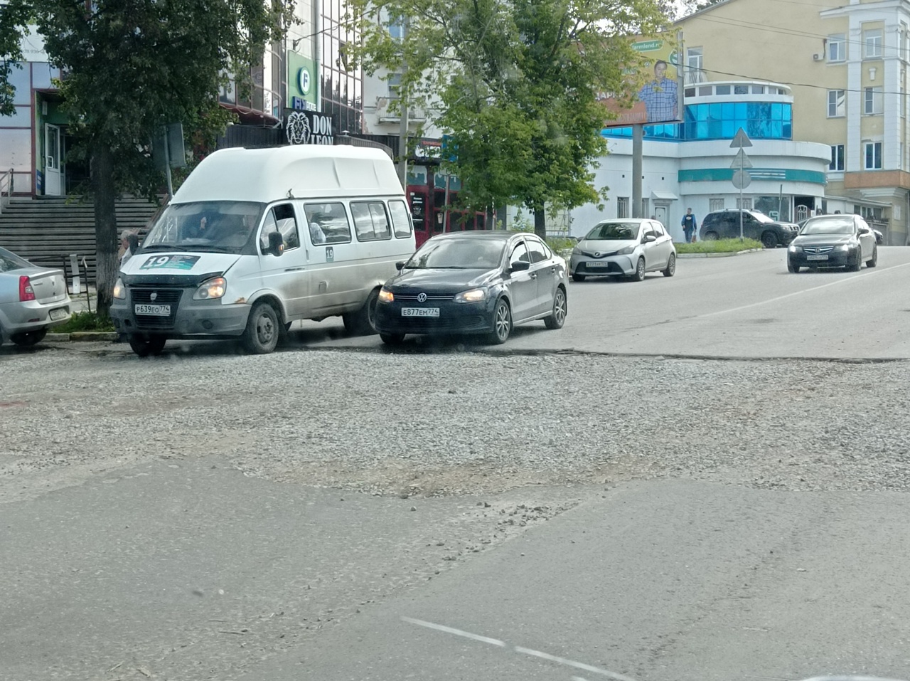 На фото – дорожное покрытие около Стадиона: сначала отсыпали щебнем, потом заасфальтировали. Около Универмага после окончания работ пока только отсыпка щебнем.