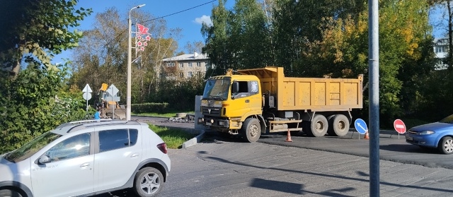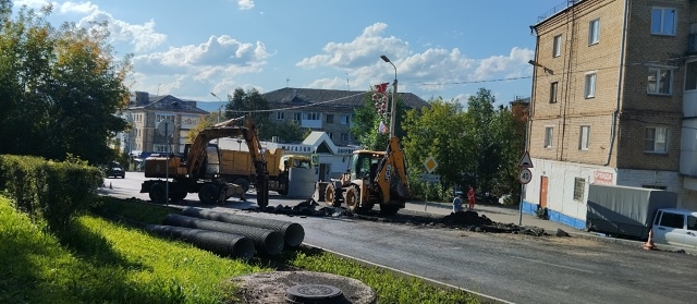 «По ул. Грибоедова подрядчик проводит плановые работы по обустройству ливневой канализации. Они выполняются после укладки первого слоя асфальтового покрытия для того, чтобы после укладки верхних слоев был единый уровень».